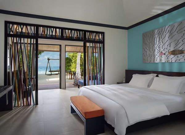 Plaj kenarında bulunan beachfront villa’larının (sahil villaları) açık havada geniş bir verandası, salıncağı ve yemek odası vardır. Odalarda klima, ücretsiz wifi, IPTV, saç kurutma makinesi, bornoz, açık hava duşu, çay /kahve yapma teçhizatı, minibar ve kasa bulunur. Plaja doğrudan açılan bu villalar otelin mercanlarına da yakındır. Villalarda king size 2 kişilik yatak bulunur ve 2 ilave yatak daha konulabilir.