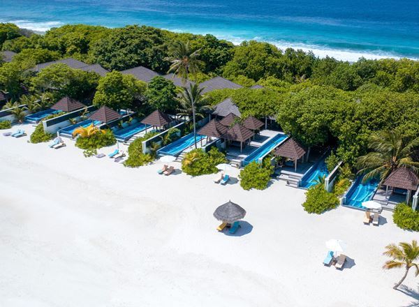 Kumsal villaları 2 kilometre uzunluğu olan türkuaz lagunanın sahili boyunca dizilidirler.