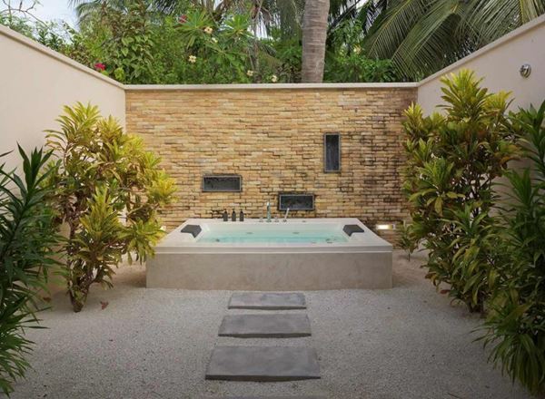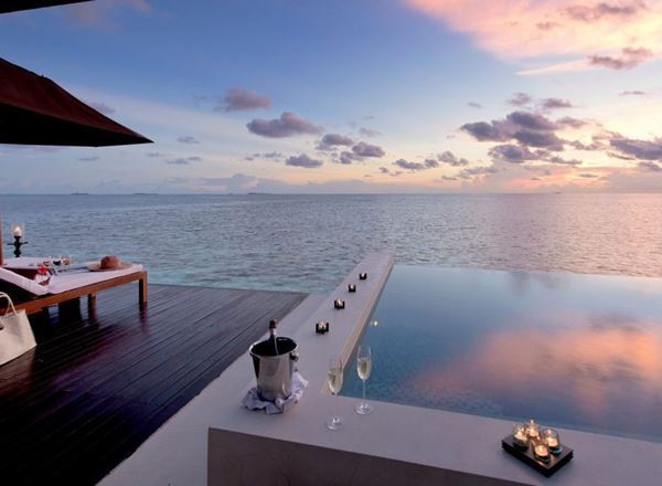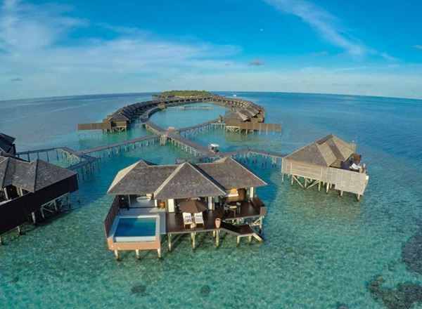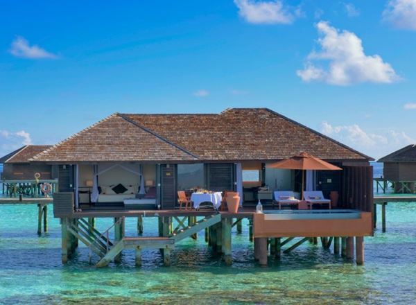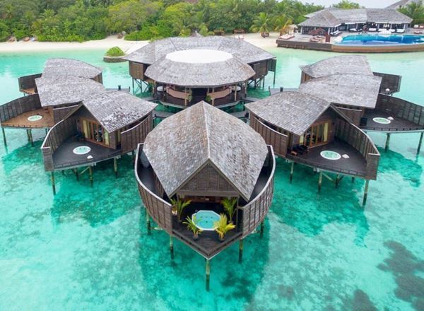 Deluxe water Villa’lar ise 125 m2’dir. Özelinizi koruyacak şekilde inşa edilmiştirler. Verandanızda 7 m2 jakuzili özel havuzunuz, villanızın içinde denizi izleyebilmeniz için cam zeminli bölmeniz, oda içinde jakuzili küvetiniz, klima ve tavan fanı, minibar, kahve/çay makinası, kasa, internet, DVD çalar, home theatre sistemi ve uydu TV bulunur.